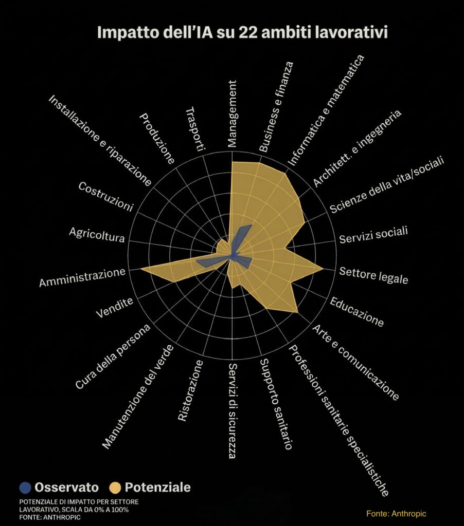 Il dibattito non è più “se” l’intelligenza artificiale cambierà il mondo del lavoro, ma “come” lo sta già facendo. Anthropic, una delle aziende leader nel settore, ha pubblicato uno studio dettagliato che analizza la vulnerabilità delle diverse professioni di fronte all’avanzata dei modelli linguistici di grandi dimensioni (LLM).